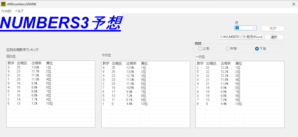 『ナンバーズ3』☆2024年11月下旬 位別出現数字ランキング C++ X Facebook はてブ Pocket LINE コピー 2024.11.20 2024年の最新データを基にしたナンバーズ3予想プログラムをC++で開発しました。使用しているプログラムは、過去の当選データを解析し、次回の当選番号を予測するために設計されています。 C++によるプログラム予測で、ナンバーズ3の数字選択式宝くじを取り扱っています。 以下、『ナンバーズ3』の位別出現数字ランキング 過去データ 第1回~第6604回 当選情報を使用。(常に最新データをアップデートして最新情報を提供します。)