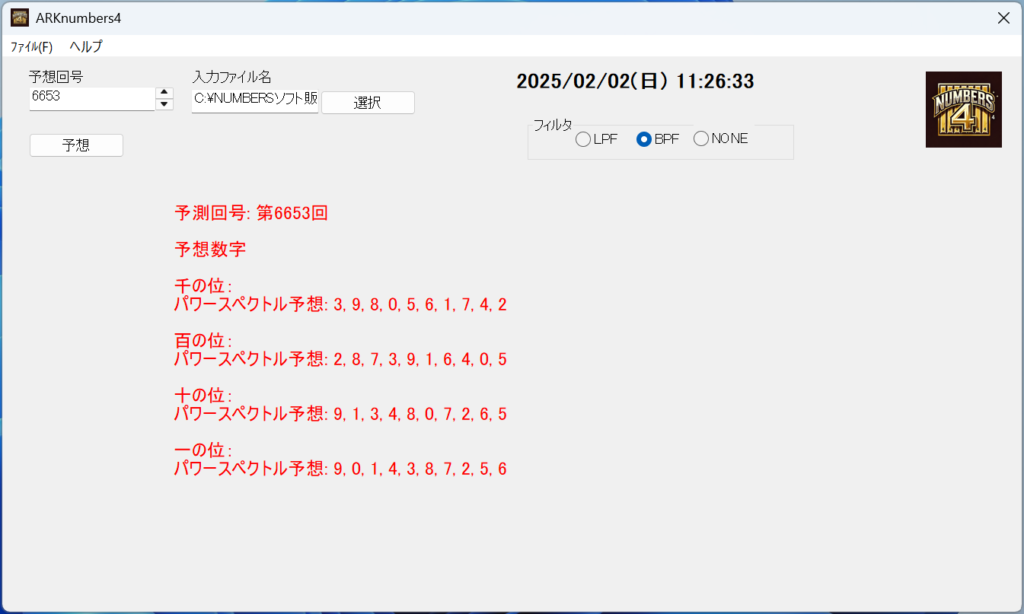 ナンバーズ当選数字予測プログラム