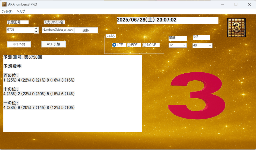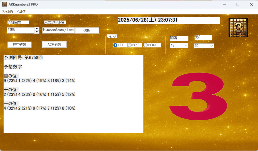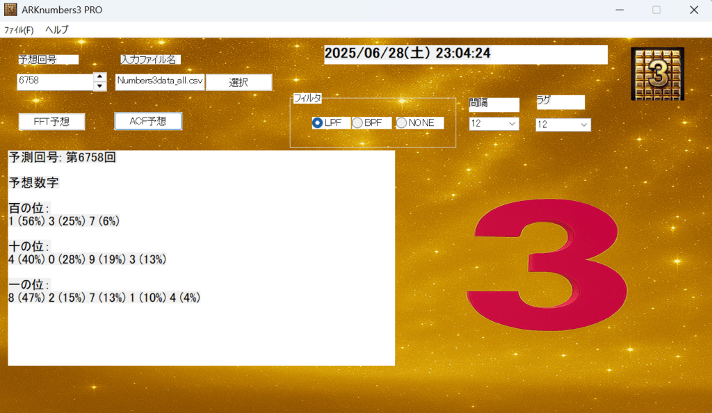 【ナンバーズ3】:第6758回FFT予測●ARKNUMBERS3 ACF(自己相関)版