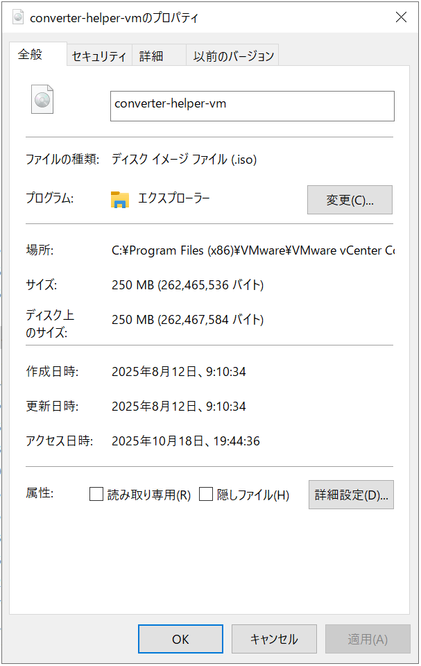 VMware vCenter Converter Standalone 9 インストール 未分類 X Facebook はてブ Pocket LINE コピー 2025.10.29 インストールした場所に「C:\Program Files (x86)\VMware\VMware vCenter Converter Standalone」 「converter-helper-vm.iso」が存在する。
