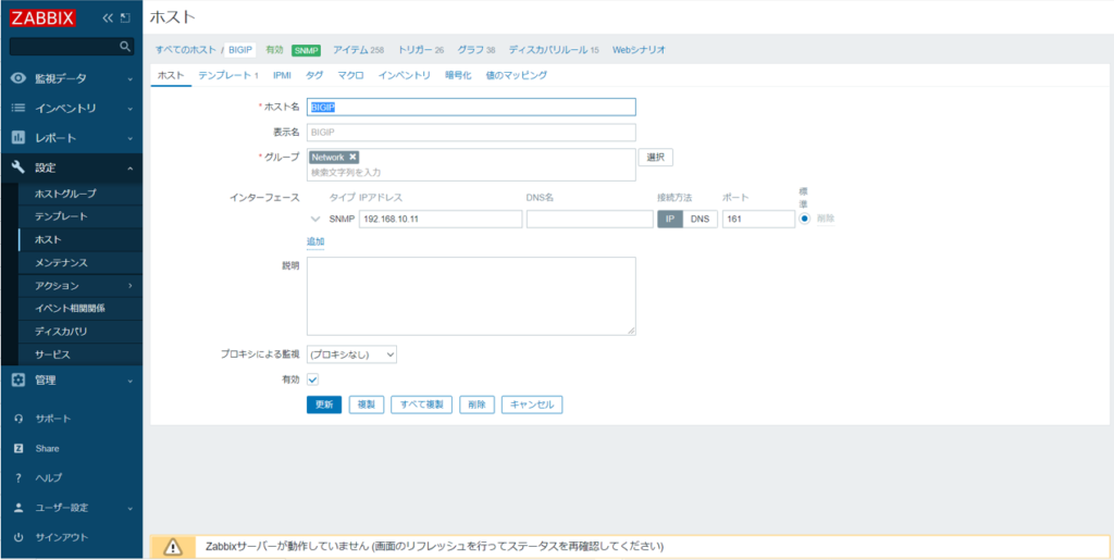 ZABBIX5.4で設定しBIG-IPからのSNMPトラップを確認する