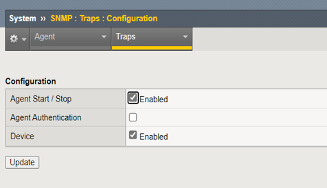 「System」⇒「SNMP」⇒「Traps」⇒「Configuration」で設定を行う。
