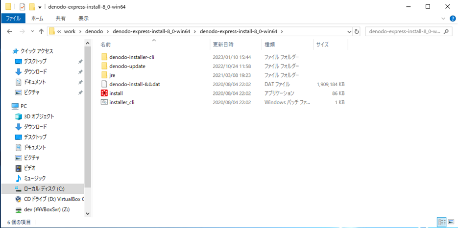 「Denodo Express Installers」がダウンロードされる。圧縮されているので解凍する。