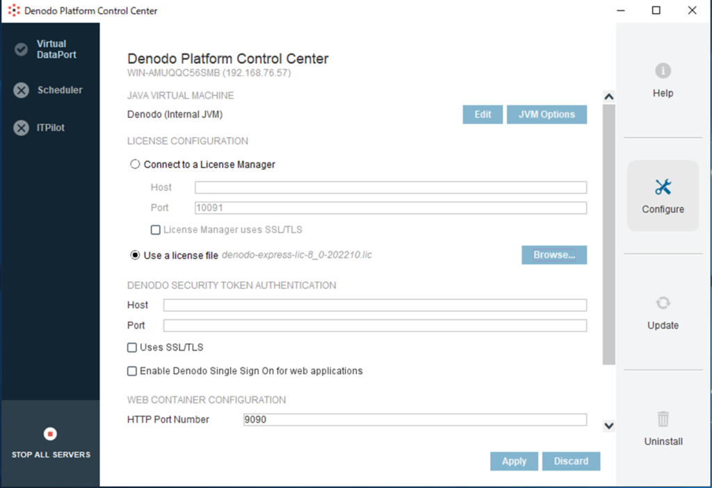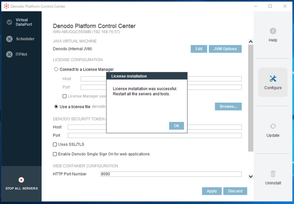 Denodo Platform 8.0 インストール2 仮想DB X Facebook はてブ Pocket LINE コピー 2023.01.122024.10.14 アフィリエイト広告を利用しています 《300枚限定♪900円OFFクーポン 15日23:59迄》【2024年♪新改良】ソーラーライト ガーデンライト 屋外 防水 IP65 800mhA エクステリア キューブ 埋め込み LEDガーデンライト LEDライト 4個セット 置き型 おしゃれ 庭 ライトアップ 外構 ソーラー 充電 センサーライト価格:2,980円(税込、送料無料) (2024/10/14時点) 楽天で購入 Configureをクリック ライセンスファイルを選択する Applyをクリック サービスを再起動する Virtual DataPort Serverの「Start」をクリック 「Running」になっていることを確認 Webブラウザーで起動されたら、サインイン画⾯で次の値を⼊⼒してください。● ログイン︓ admin● パスワード︓ admin 入力後、「Connect」をクリック