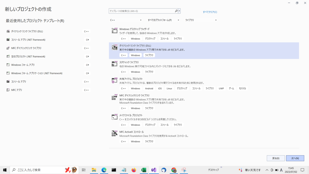 DLLが64ビットでコンパイルする。環境にあわせてコンパイルする。
